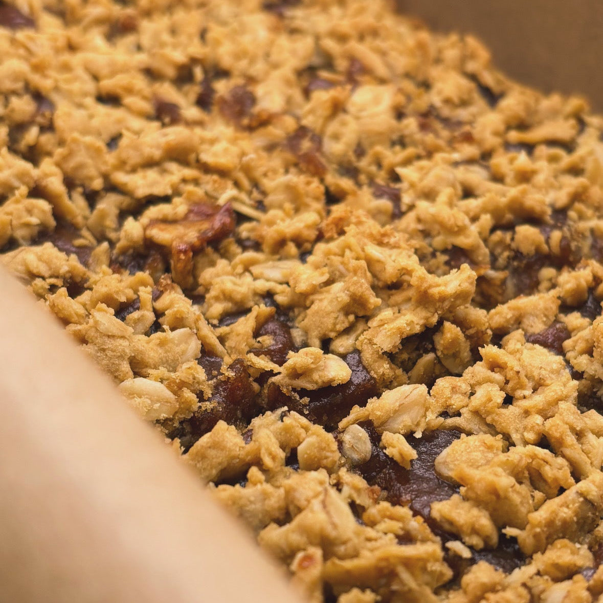 بار شوفان ناعم ودافئ المذاق، مصنوع من شوفان عضوي ملفوف، وزبدة حقيقية، وكراميل تمر غني محضّر في المنزل. مُحلّى طبيعيًا بدبس التمر، ومخبوز برفق حتى يكتسب لونًا ذهبيًا شهيًا وتوازنًا مثاليًا في الطعم.
